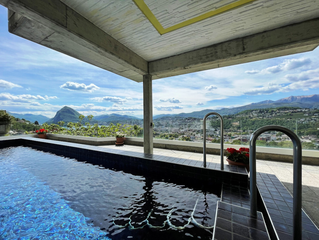 Luminosa villa con vista spettacolare su tutta la vallata di Lugano (lago, golfo, città e monti), una vera terrazza panoramica dalla bellezza incomparabile.